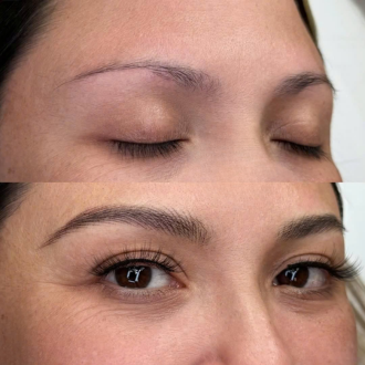 Microblading or Micro Feathering: Both techniques involve using a manual handheld tool with fine needles to create small, precise strokes that resemble natural eyebrow hairs. These strokes are applied in the direction of the natural hair growth to achieve a more realistic and textured look.